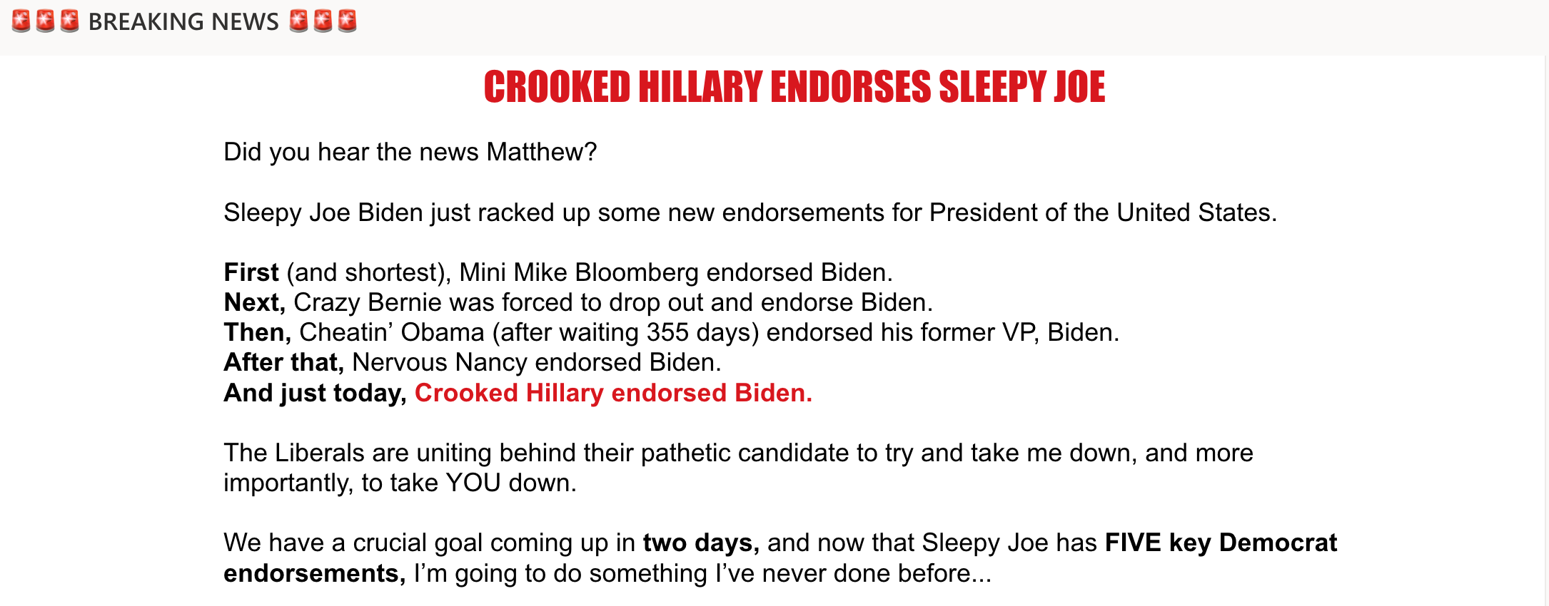 • Hiden Biden [sic] (doesn't even make sense unless you pronounce it incorrectly??)